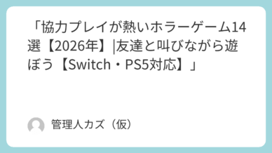 Nintendo Switch「協力プレイが熱いホラーゲーム14選【2026年】|友達と叫びながら遊ぼう【Switch・PS5対応】」 友達とボイスチャットで叫びながら楽しむ!オンライン協力プレイ対応のホラーゲーム14選。Dead by Daylight、7 Days to Die、WORLD WAR Zなど、Switch・PS5で遊べる名作を厳選。ゾンビサバイバル、非対称対戦、協力脱出まで。最大4人で恐怖を分かち合おう! 2026.03.17Nintendo SwitchNintendo Switch 2